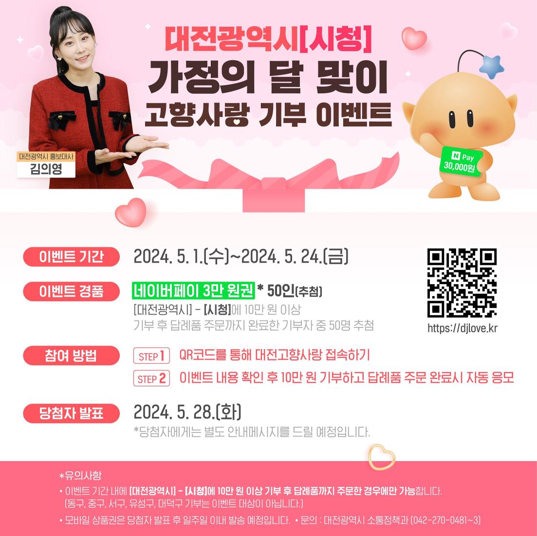 – 대전시,‘가정의 달’고향사랑기부 이벤트, 모바일 상품권 추첨 –