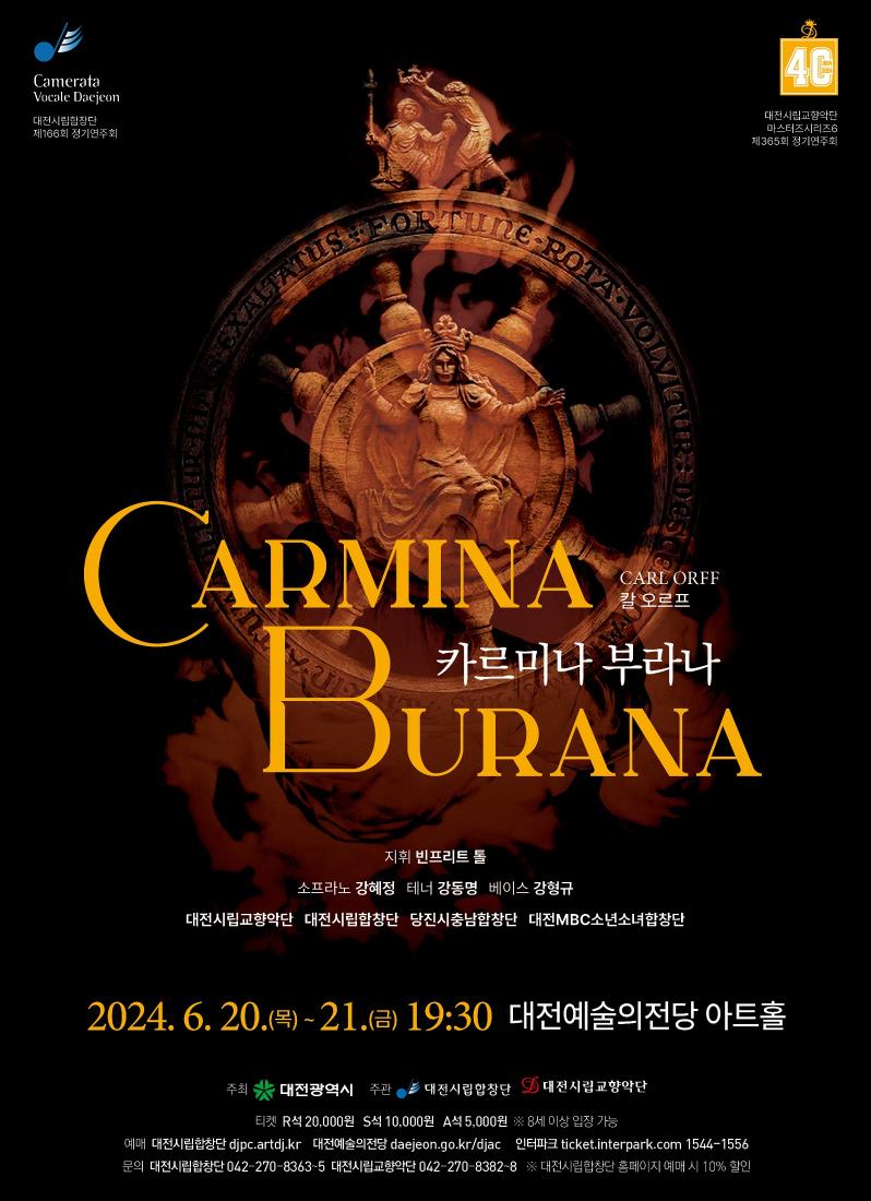 대전시립합창단과 대전시립교향악단이 공동 주관하는 정기연주회 <카르미나 부라나>가 20일과 21일 오후 7시 30분 대전예술의전당 아트홀에서 연주된다.