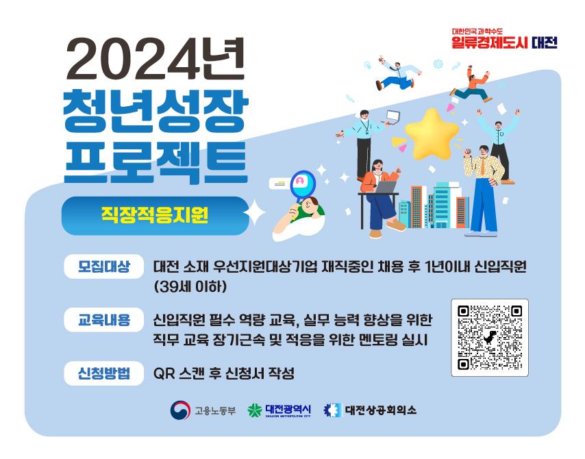 대전시는 취업에 어려움을 겪고 있는 청년들의 원활한 사회활동 지원 및 구직 의욕 고취를 위한 ‘청년성장프로젝트’ 참여자를 모집한다.