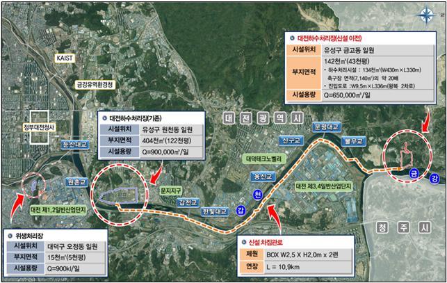 대전하수처리장 시설현대화는 처리장과 차집관로 구간으로 나뉜다.