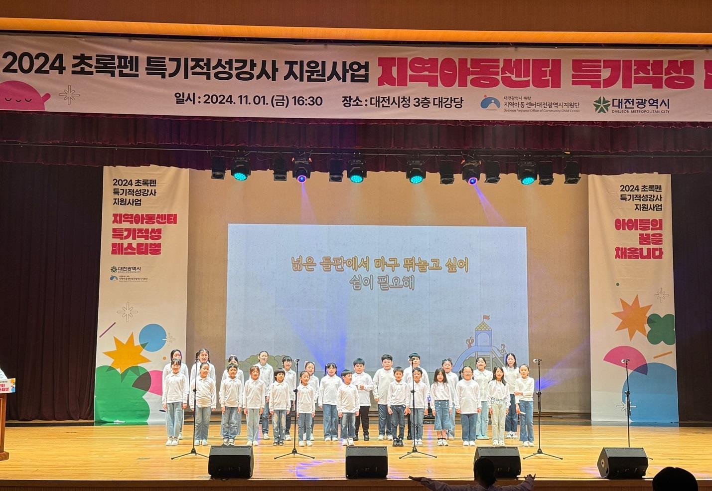대전시는 11월 1일 시청 대강당에서 관내 지역아동센터 종사자, 아동 및 학부모 등 500여 명이 참석한 가운데‘초록펜 특기적성 성장발표회’를 개최했다.