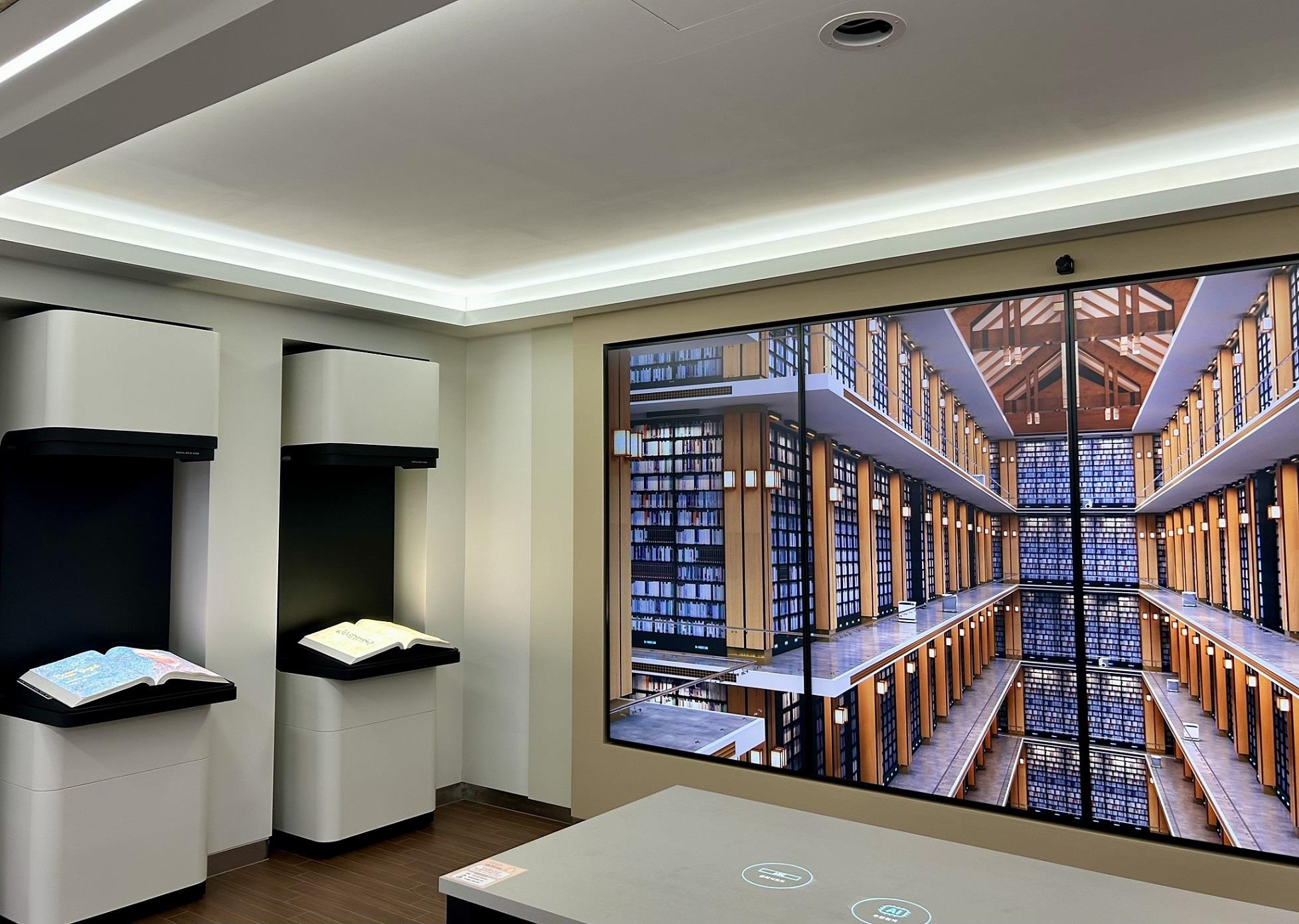 한밭도서관 2층에 있는 디지털창작실은 터치 테이블, 대형 미디어 월, 디지털북 키오스크 등 최신 기술이 접목된 실감형 체험 공간이다.
