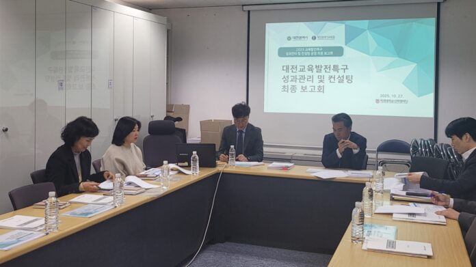 대전시는 27일 시청 6층‘대전교육발전특구 성과관리 및 컨설팅운영 최종보고회’를 개최했다. 이번 보고회에는 대전시와 대전시교육청 관계자, 목원대 산학협력단 등이 참석했다.